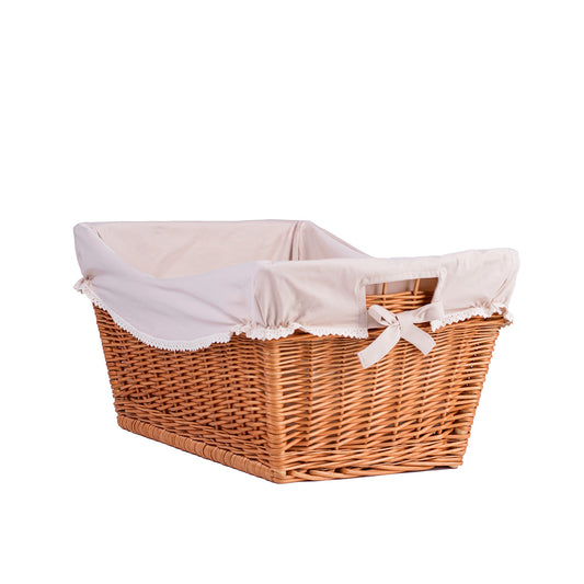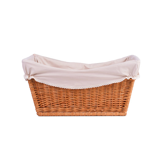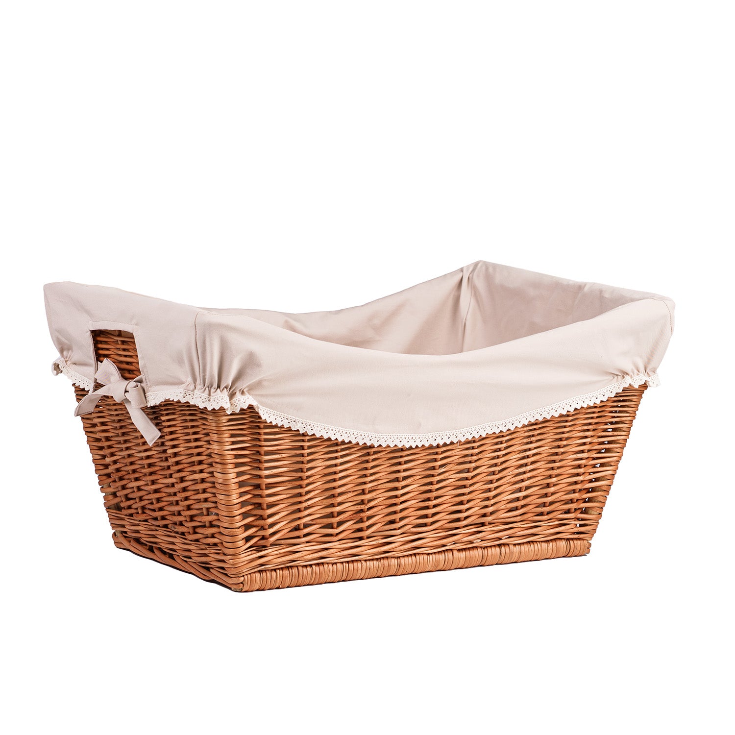 Torellia wiklinowy kosz do przechowywania z beżowym obszyciem TheWickerStories