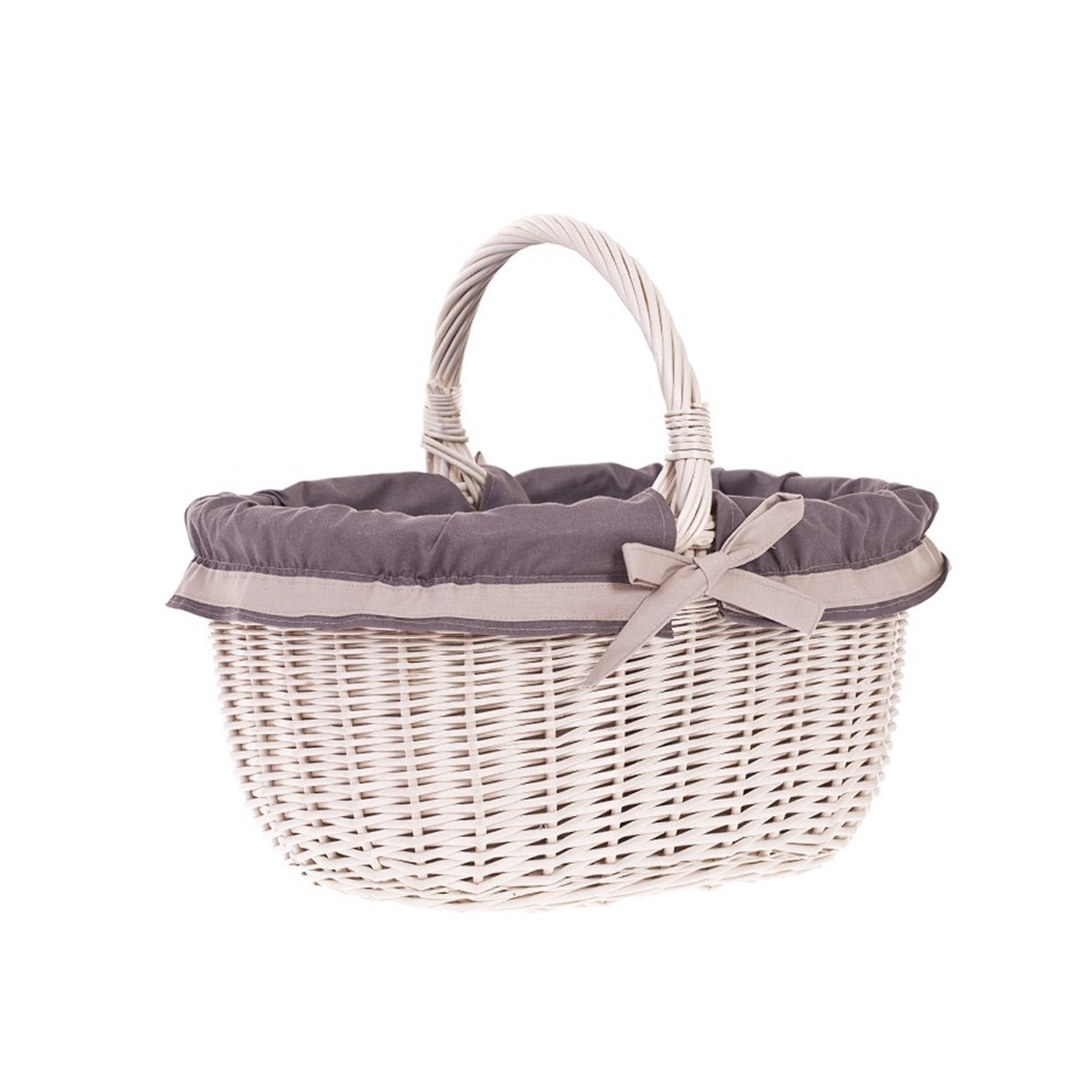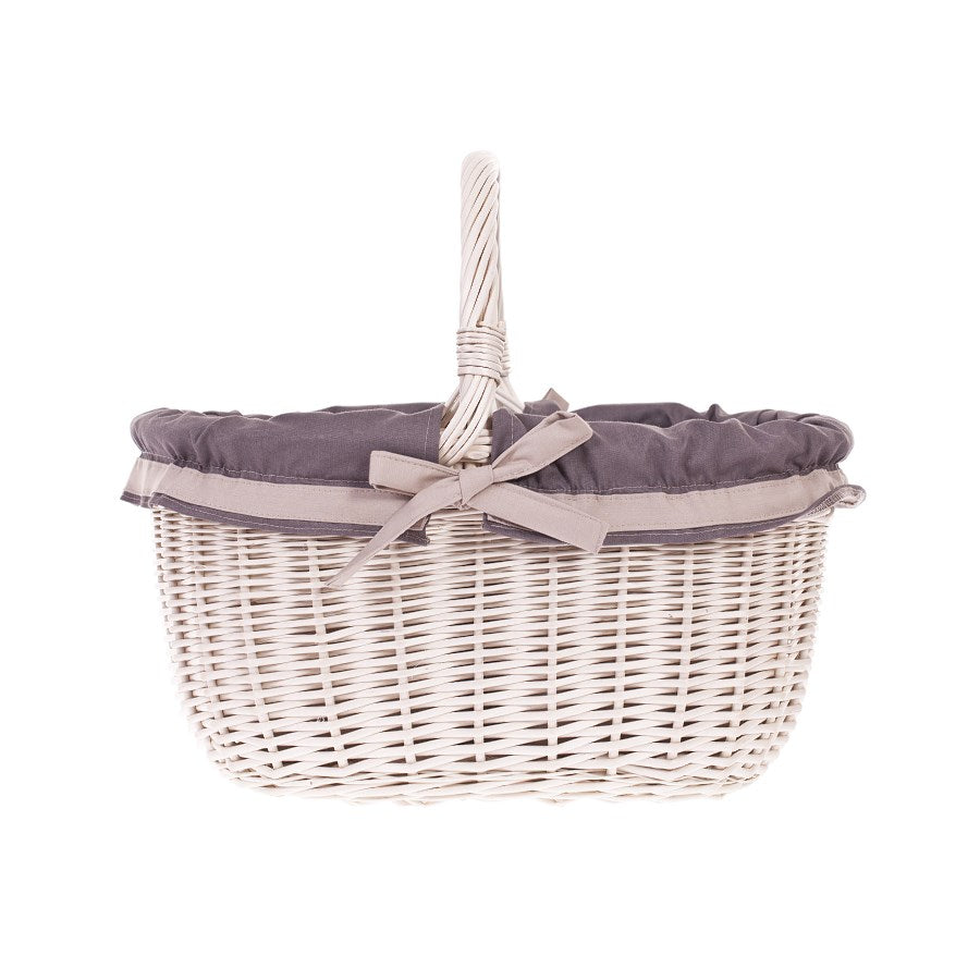 Specyfikacja Twojego Walerissa kosz na zakupy z rączką wiklinową i szarym obszyciem TheWickerStories