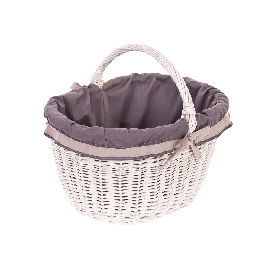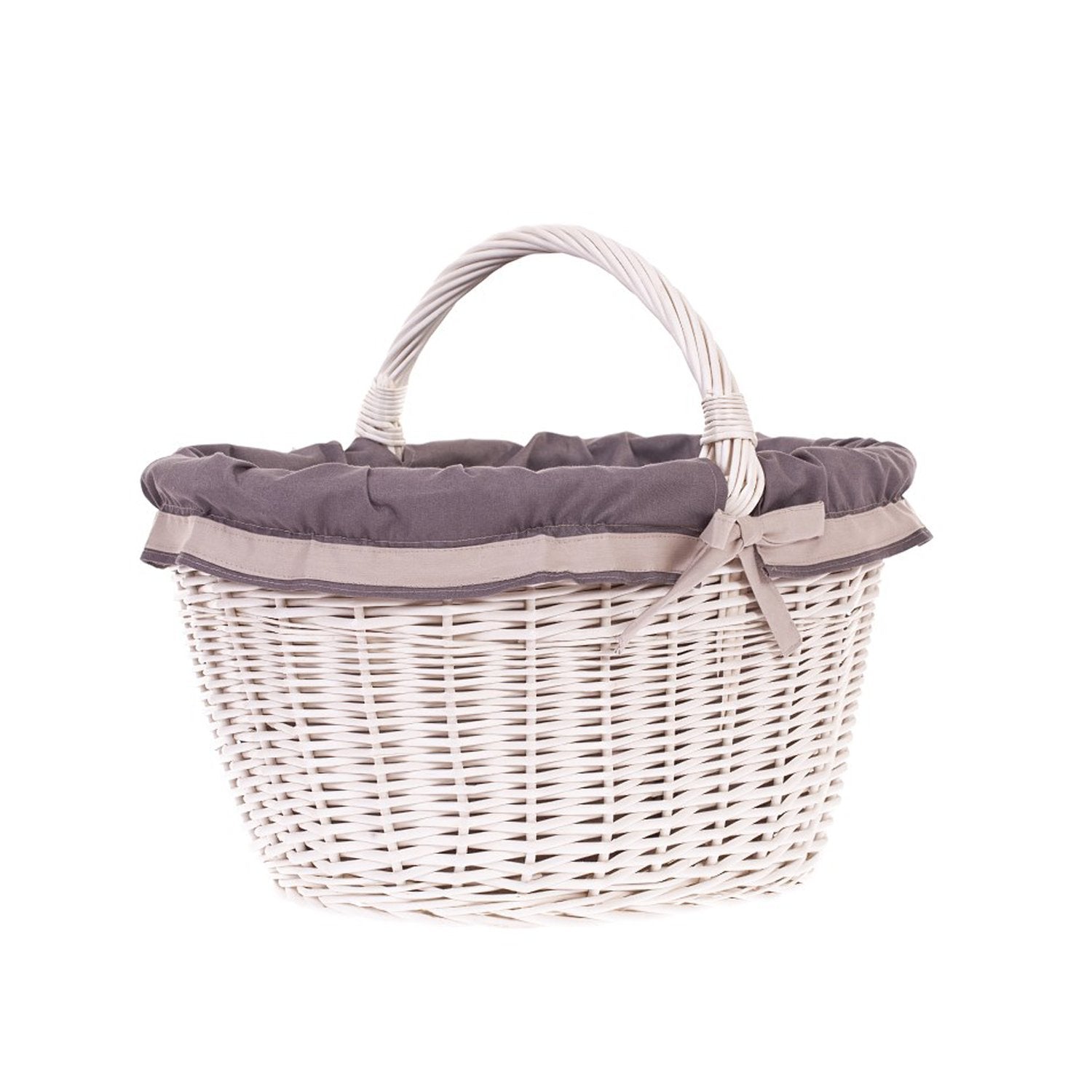 Specyfikacja Twojego Walerissa kosz na zakupy z rączką wiklinową i szarym obszyciem TheWickerStories