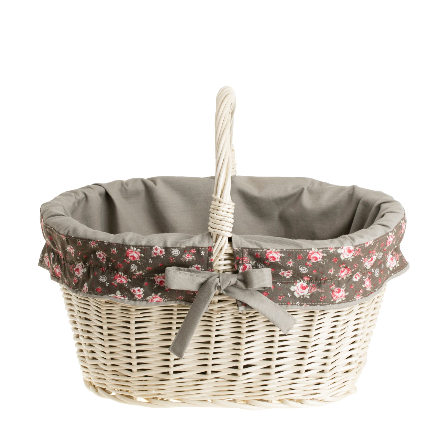 Specyfikacja Twojego Walerissa kosz na zakupy z rączką wiklinową i szarym obszyciem TheWickerStories