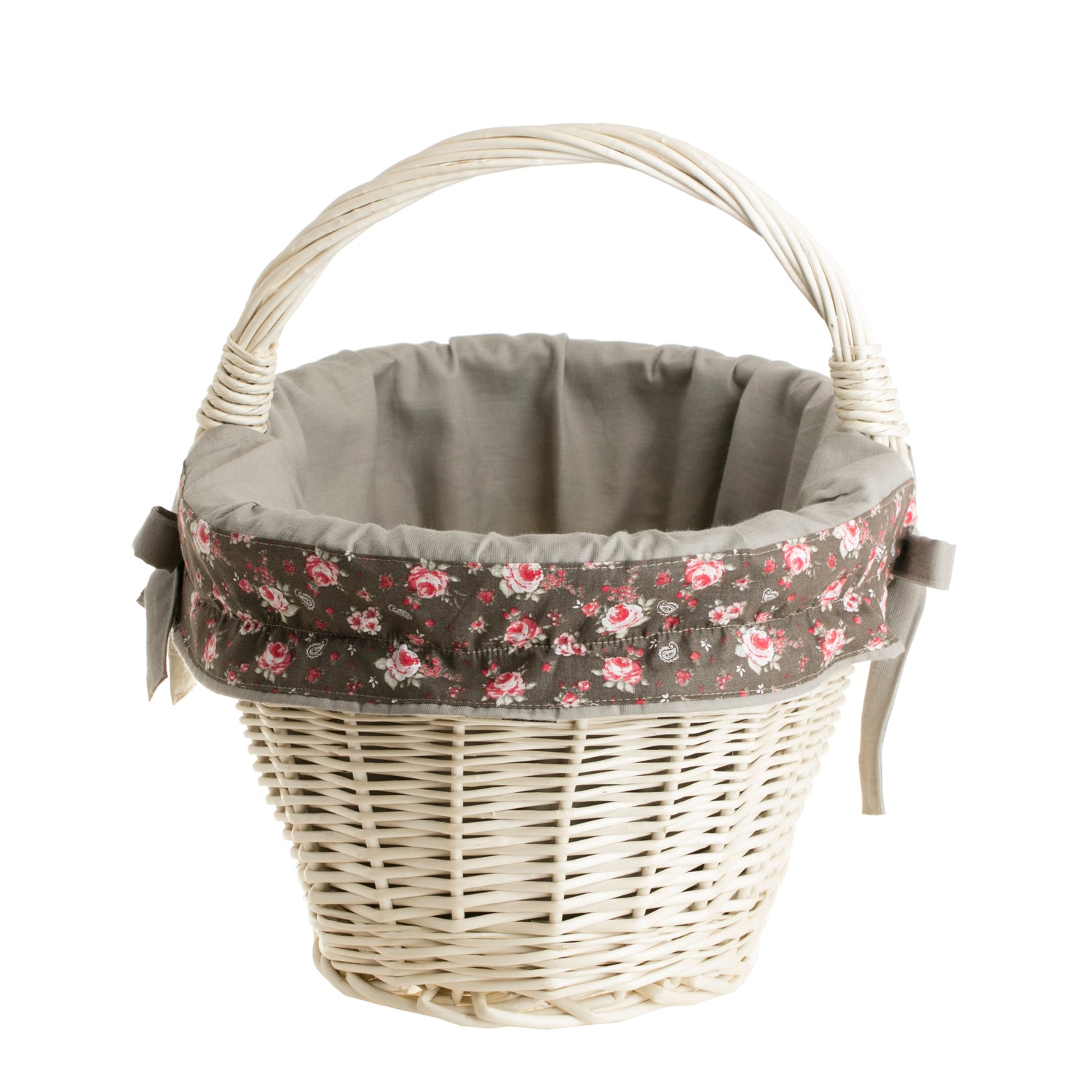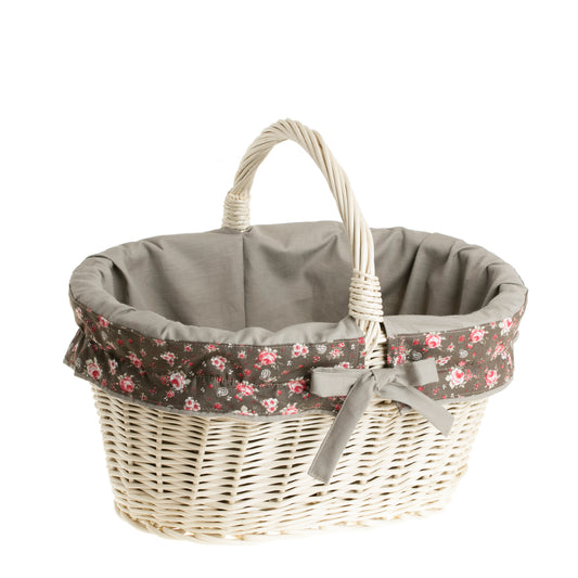 Walerissa kosz na zakupy z rączką wiklinową i szarym obszyciem TheWickerStories