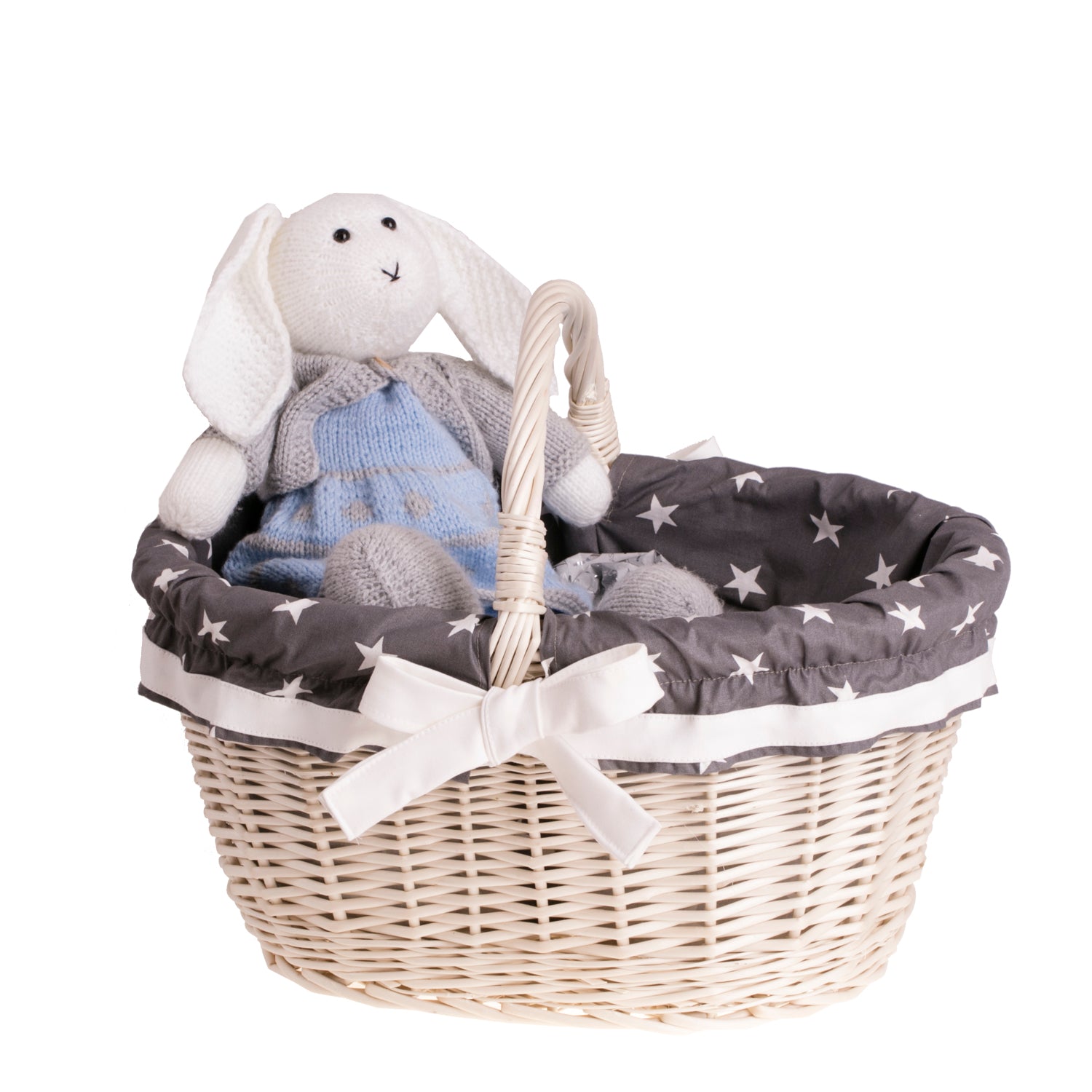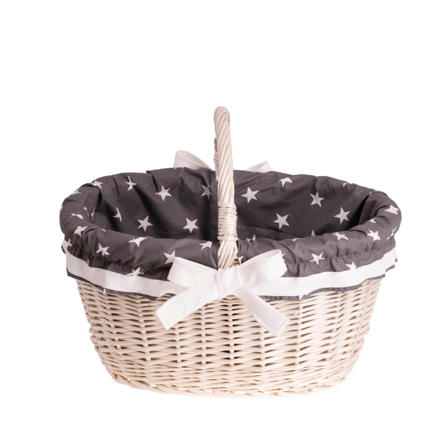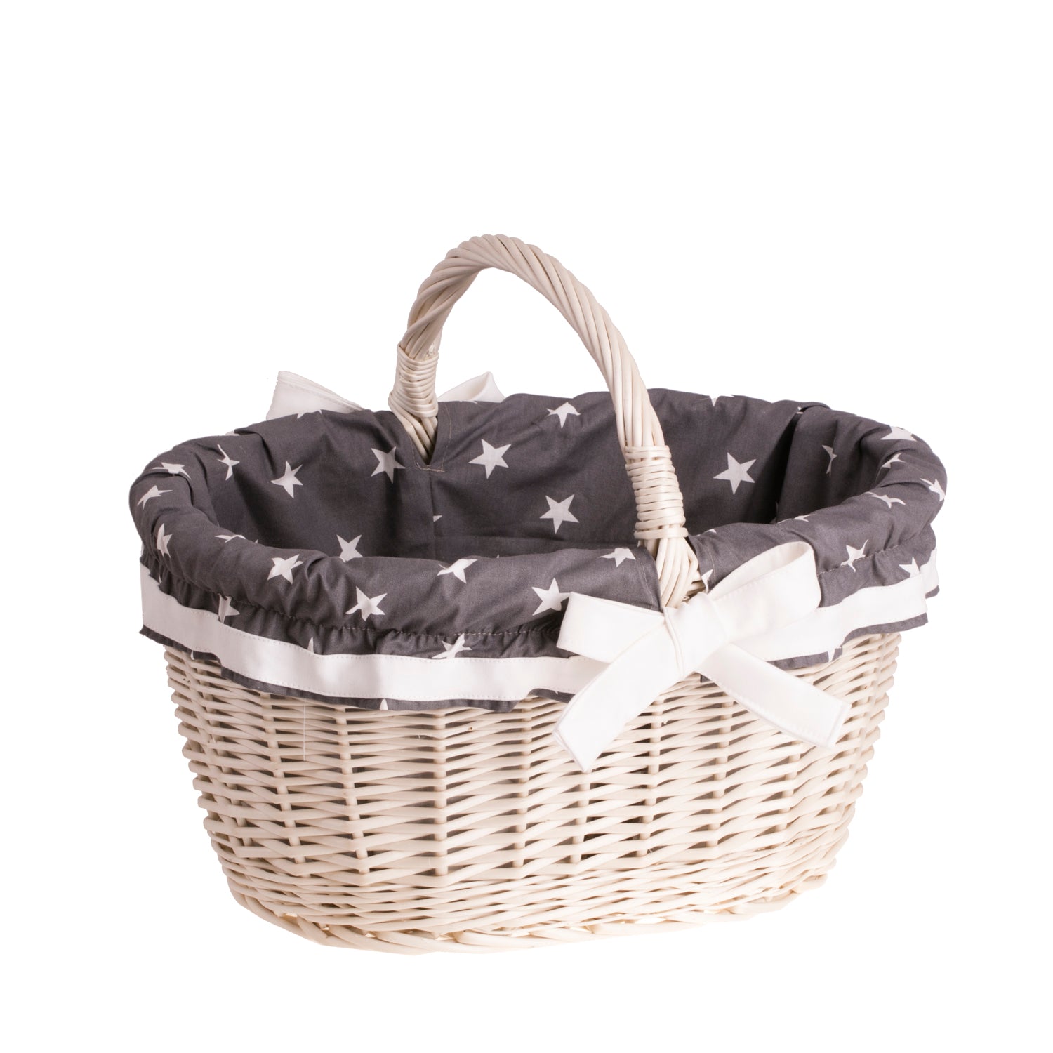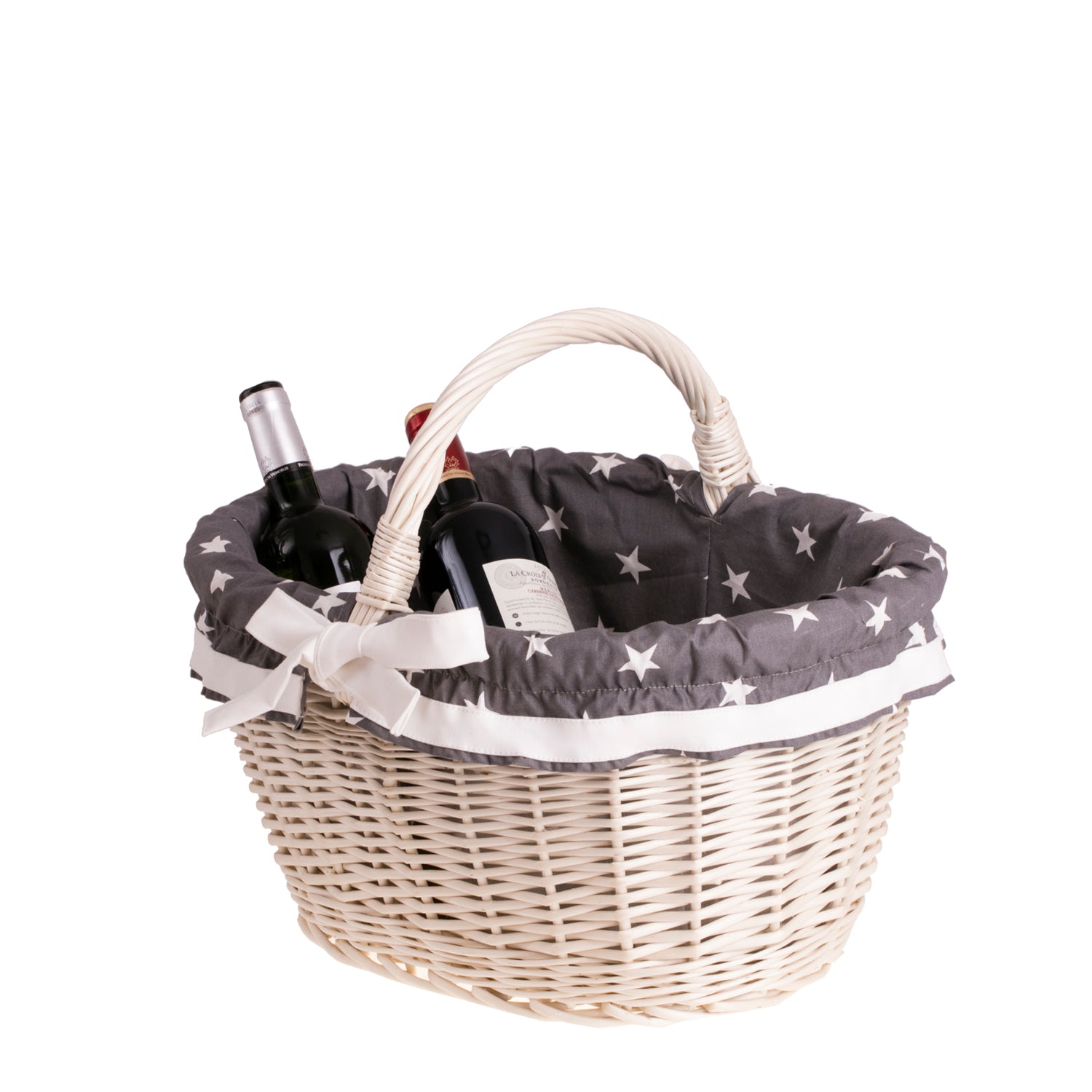 Specyfikacja Twojego Walerissa kosz na zakupy z rączką wiklinową i szarym obszyciem TheWickerStories