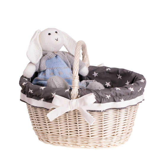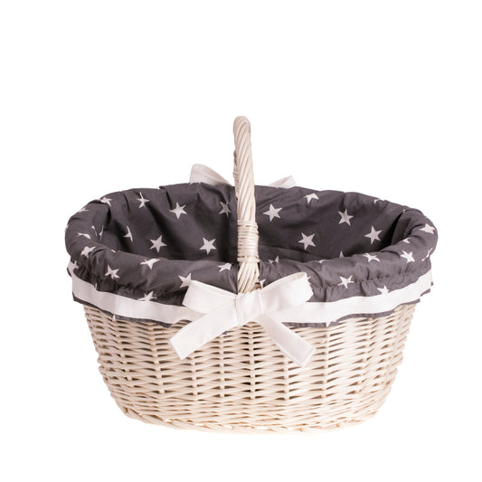 Walerissa kosz na zakupy z rączką wiklinową i szarym obszyciem TheWickerStories