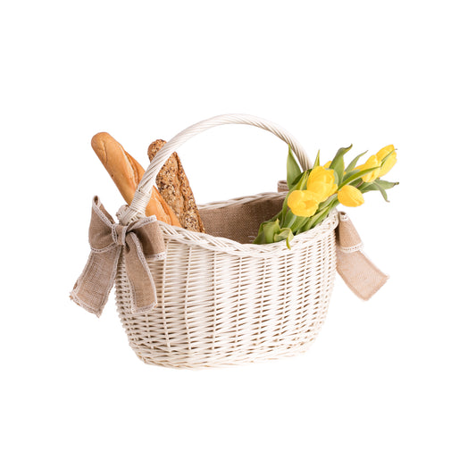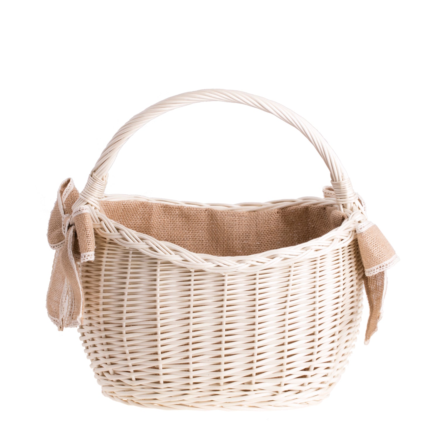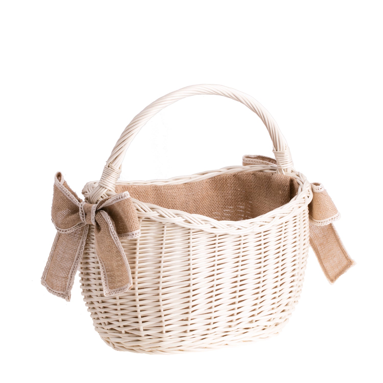 Specyfikacja Twojego Wavellia wiklinowy kosz na zakupy z jutowym wykończeniem, rączką i kokardami TheWickerStories
