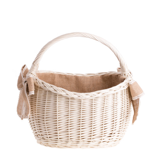 Wavellia wiklinowy kosz na zakupy z jutowym wykończeniem, rączką i kokardami TheWickerStories