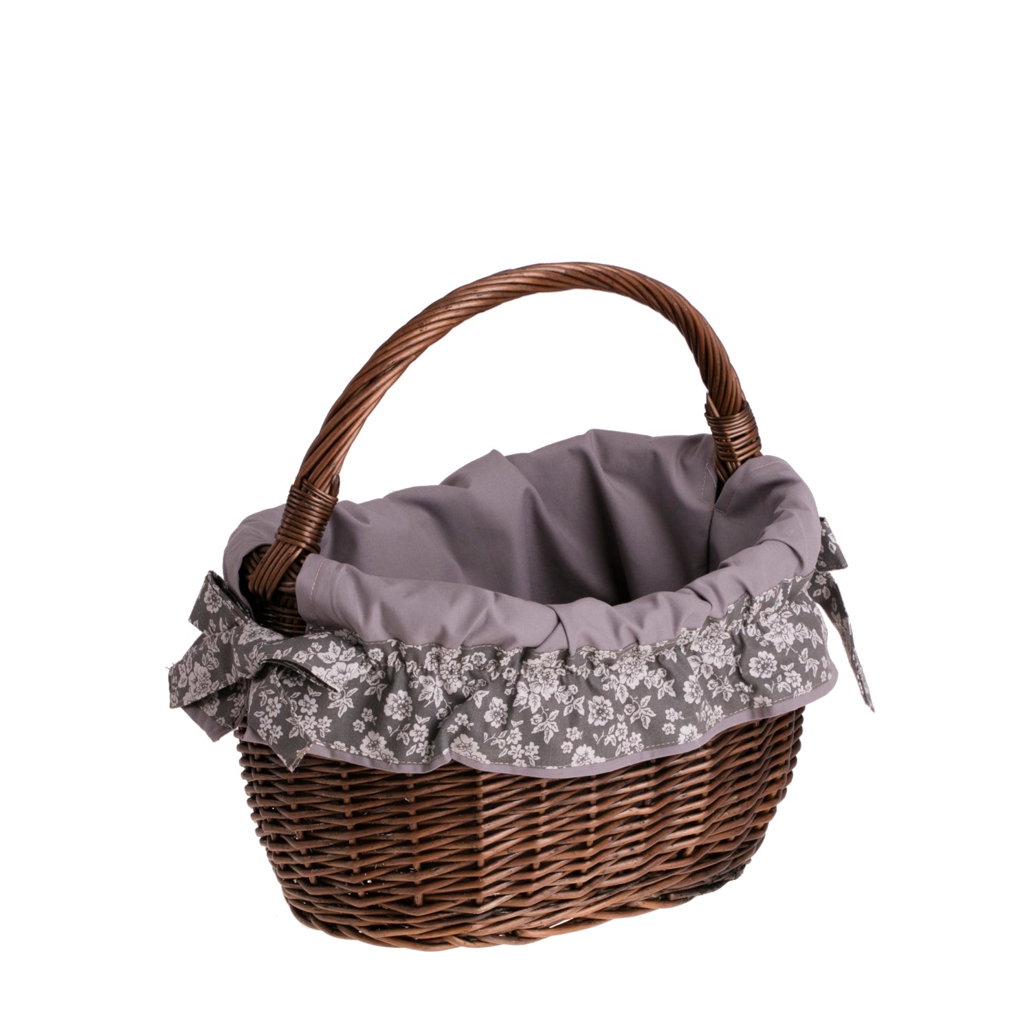 Wavellia wiklinowy kosz na zakupy z szarym obszyciem, z rączką TheWickerStories