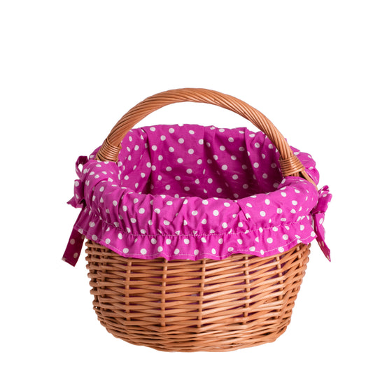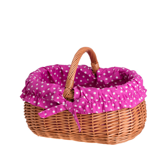 Wendissa kosz na zakupy z rączką wiklinową i różowym obszyciem TheWickerStories