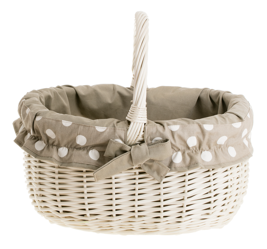 Werburga kosz na zakupy z rączką wiklinową i beżowym obszyciem TheWickerStories