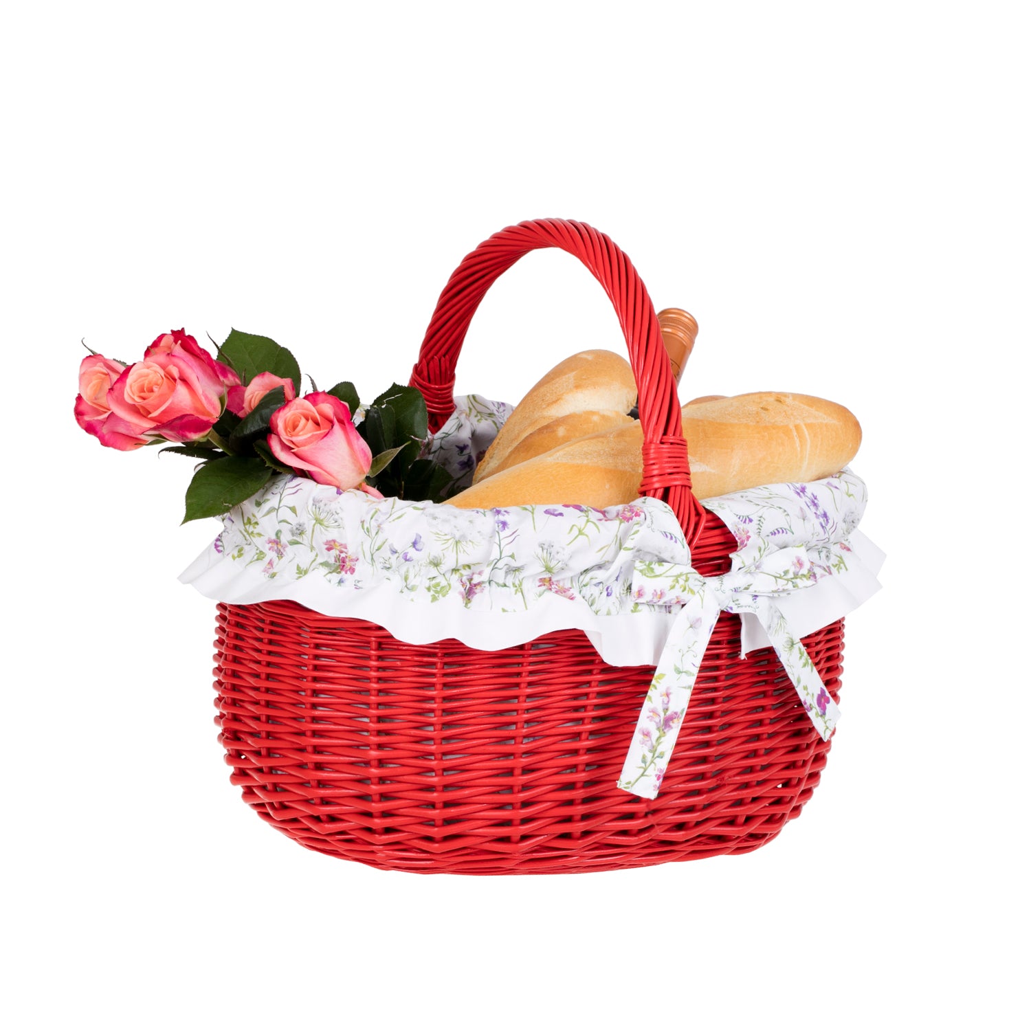 Werburga kosz na zakupy z rączką wiklinową i białym obszyciem TheWickerStories