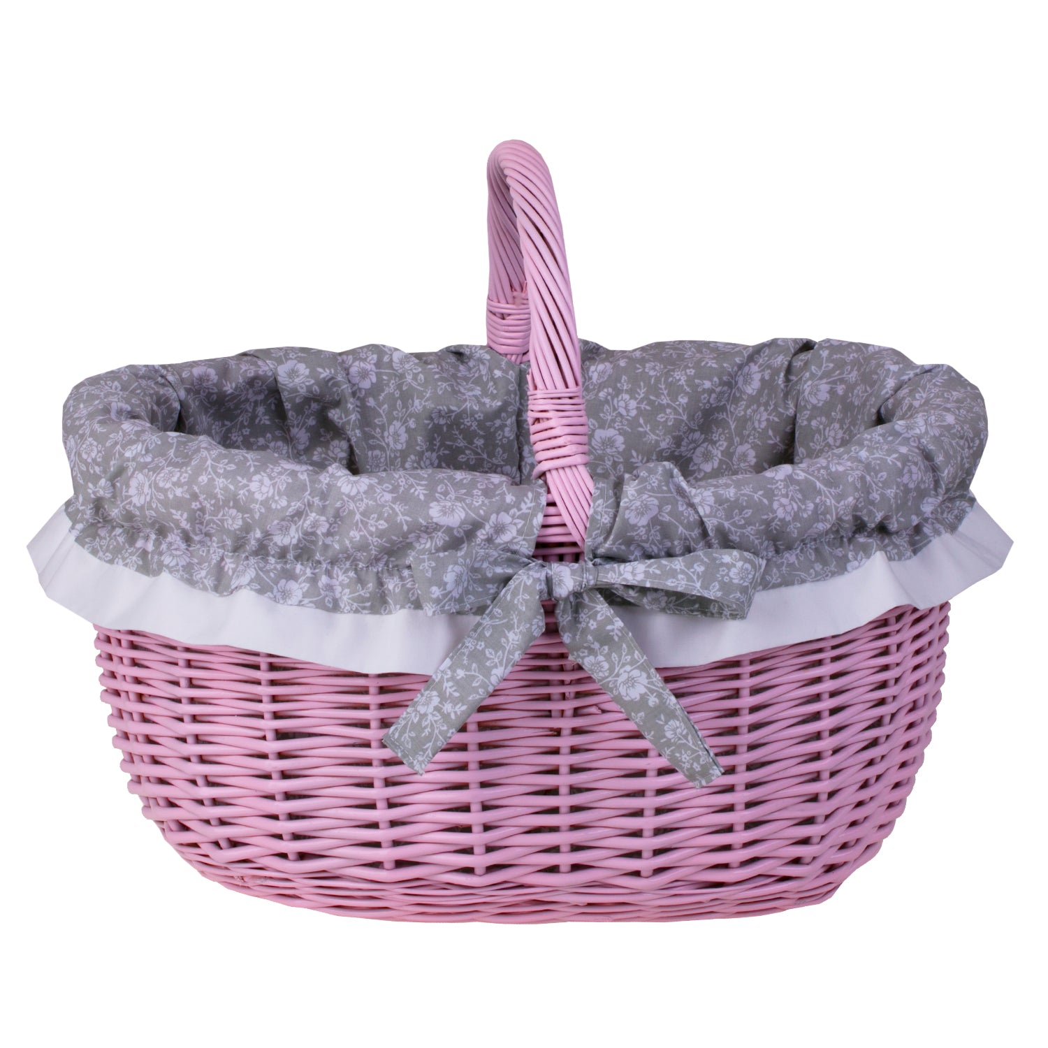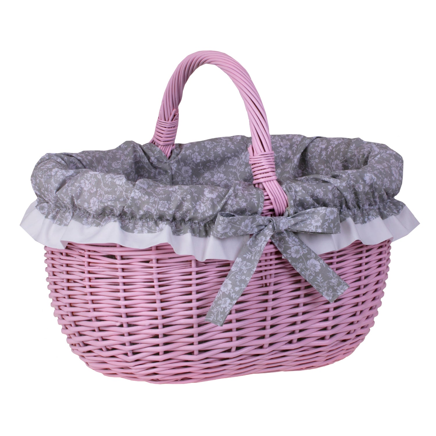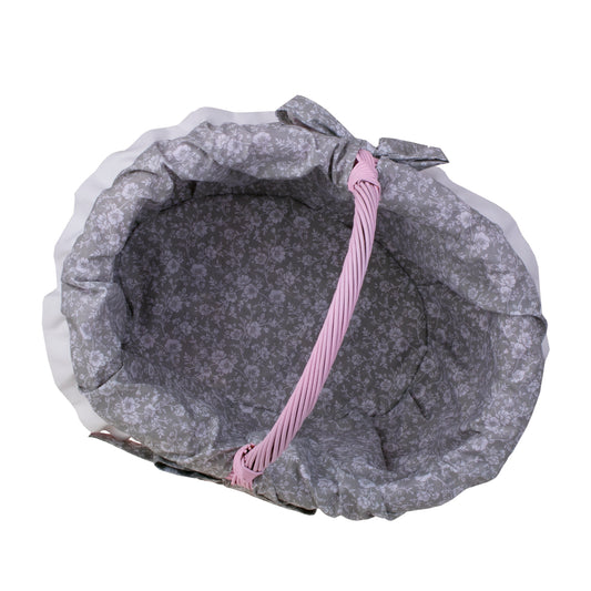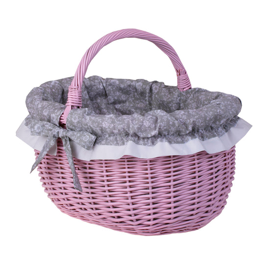 Werburga kosz na zakupy z rączką wiklinową i szarym obszyciem TheWickerStories