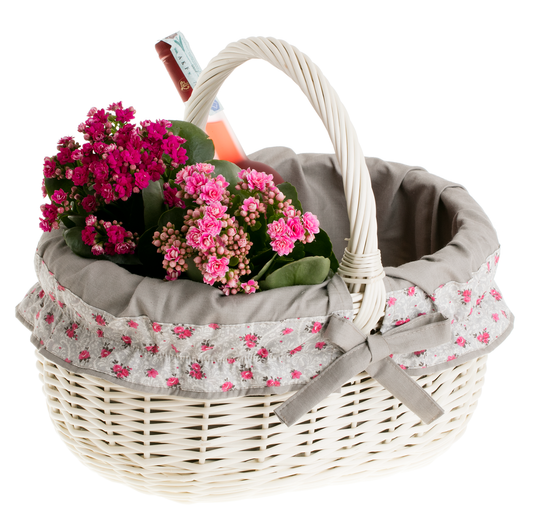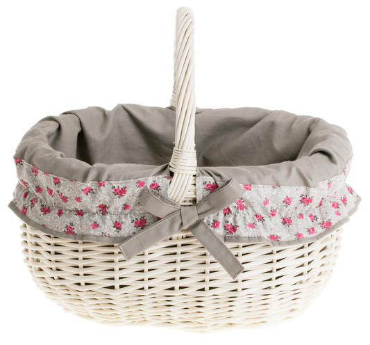 Werburga kosz na zakupy z rączką wiklinową i szarym obszyciem TheWickerStories
