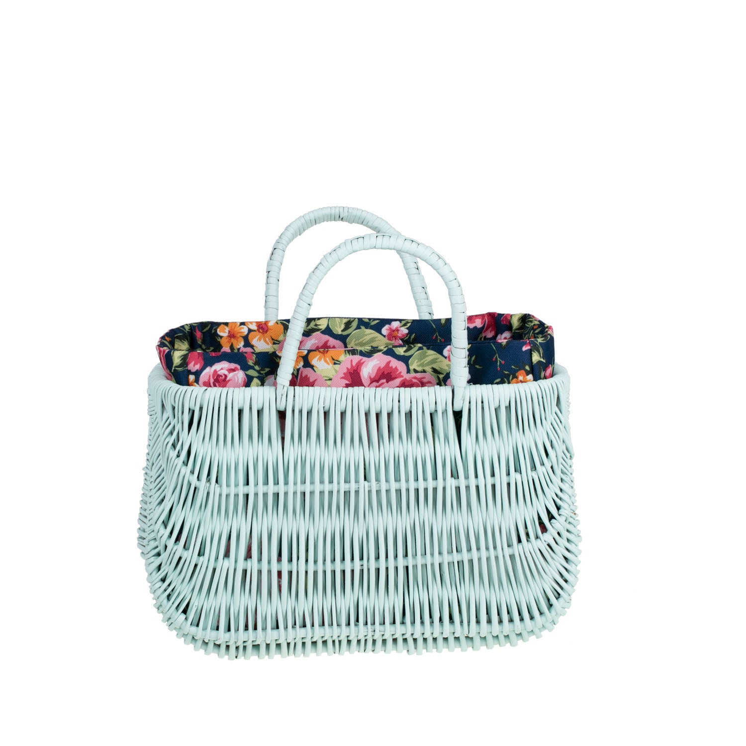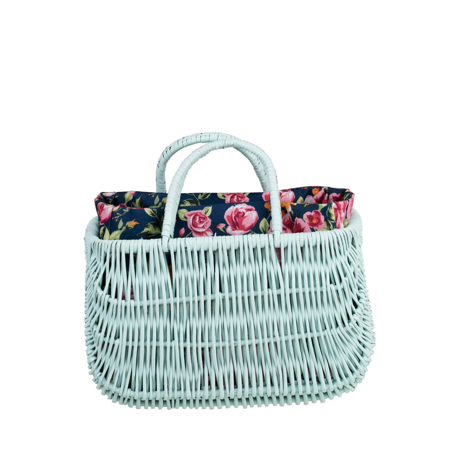 Ta mała torebka‑koszyk z wikliny urzeka miętową plecionką i dopracowanymi detalami. Dwa okrągłe uchwyty zapewniają pewny chwyt, a równy splot dodaje elegancji. Wnętrze wykończono granatowym wkładem z miękkiej tkaniny. Obszycie można zdjąć i prać w pralce w temperaturze 30°C.