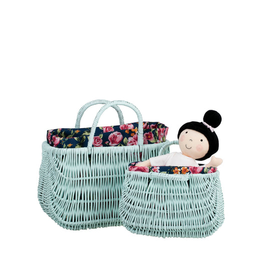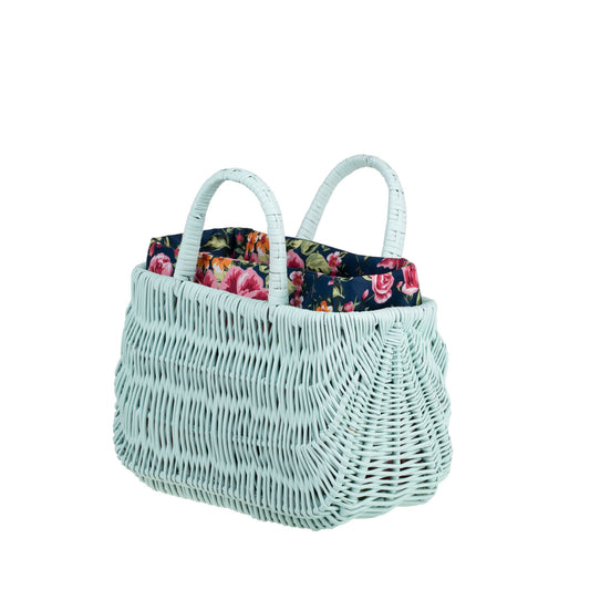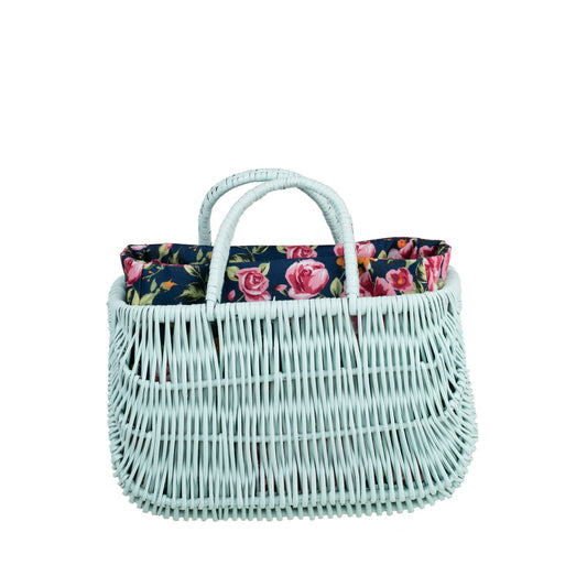 Werlissa wiklinowy kosz na zakupy i plażę z granatowym obszyciem, z rączkami TheWickerStories