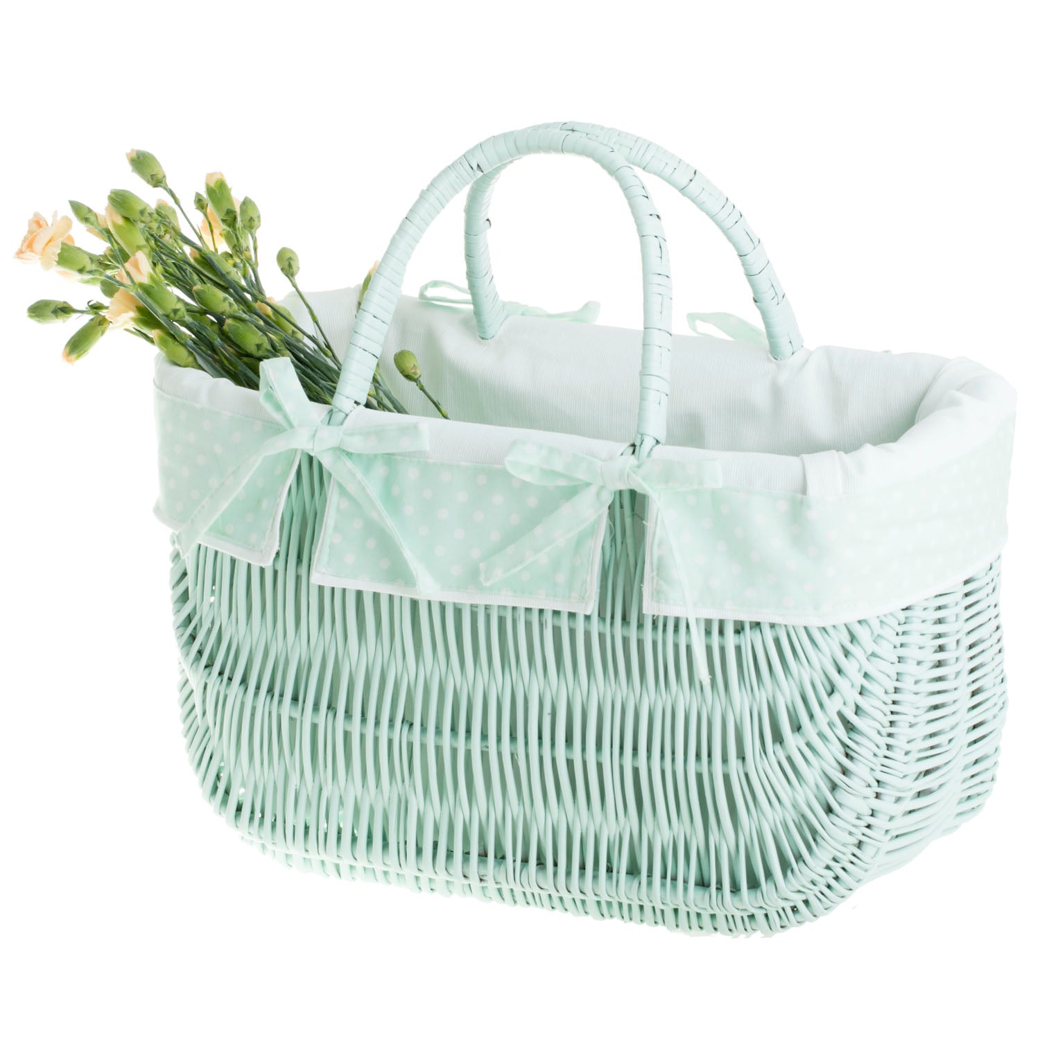 Specyfikacja Twojego Werlissa wiklinowy kosz na zakupy z miętowym obszyciem, z dwiema rączkami TheWickerStories