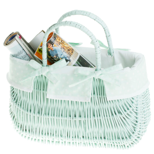Werlissa wiklinowy kosz na zakupy z miętowym obszyciem, z dwiema rączkami TheWickerStories