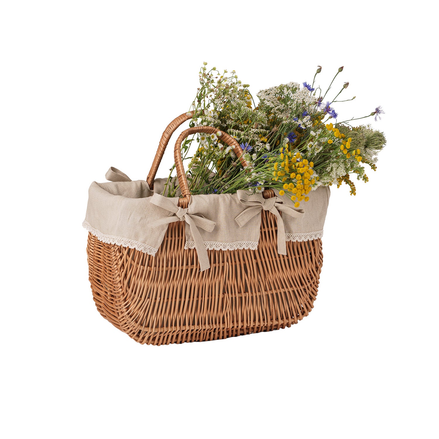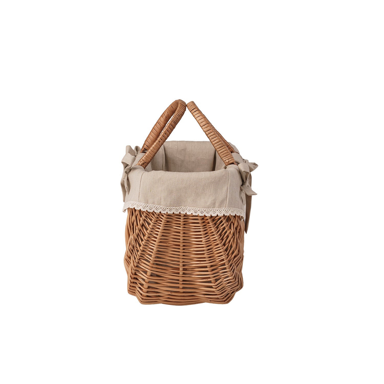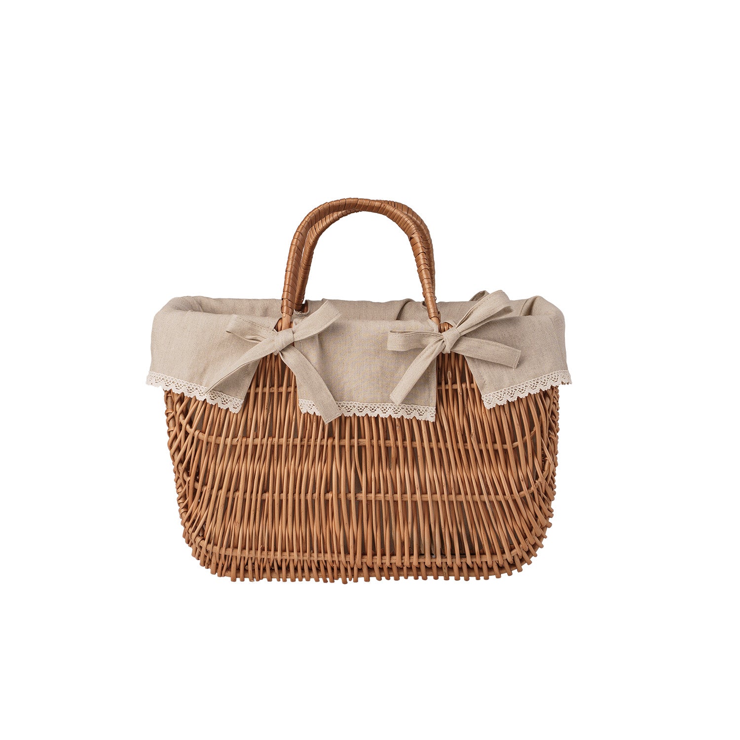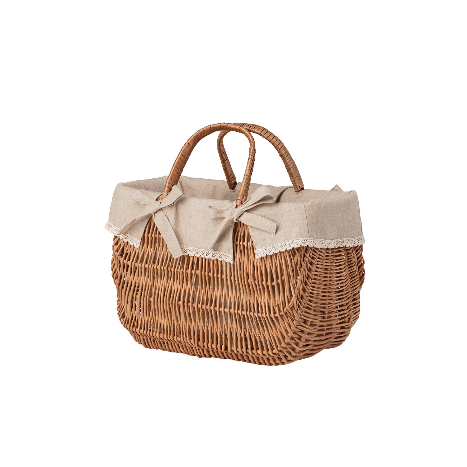 Werlissa wiklinowy koszyk z beżowym obszyciem i rączkami TheWickerStories