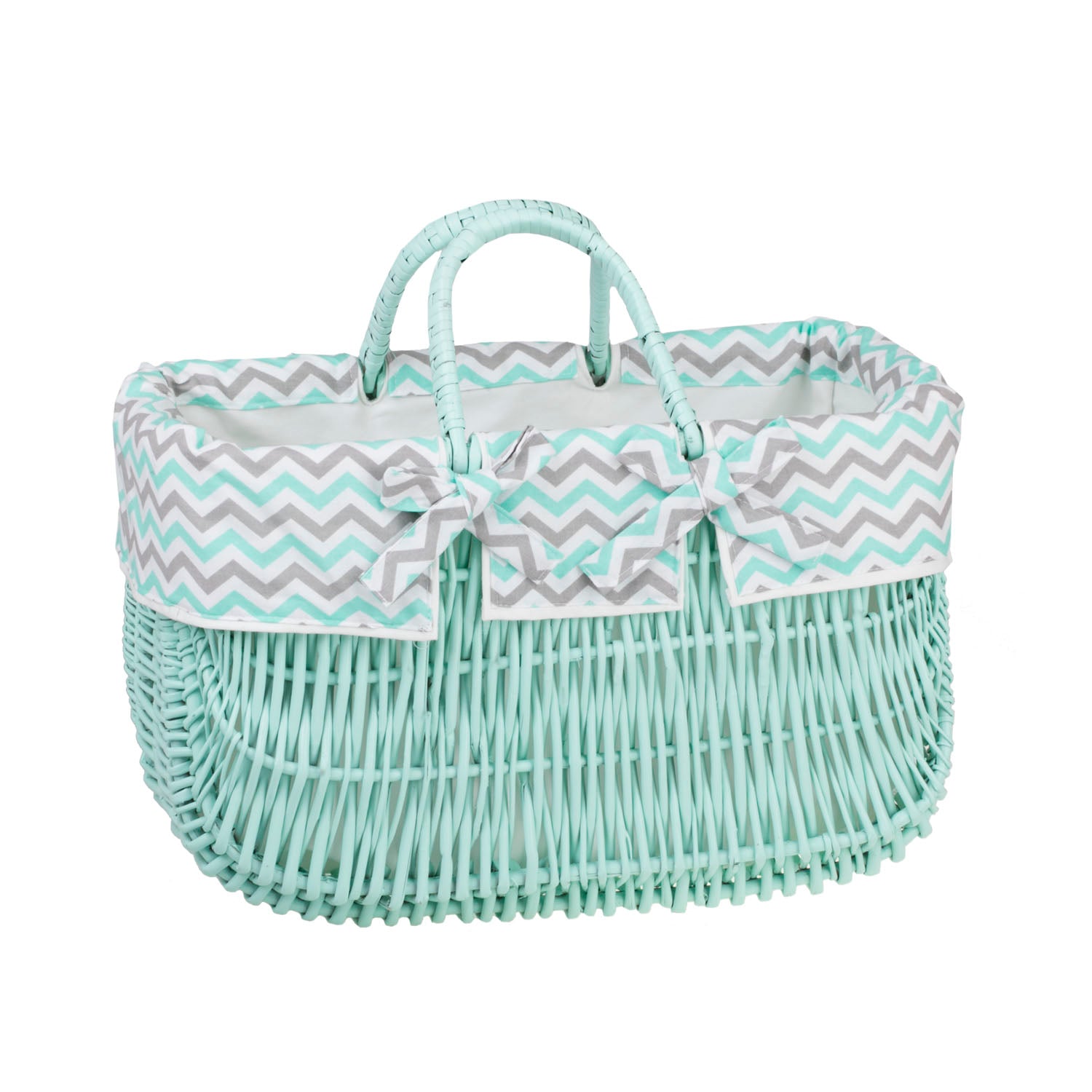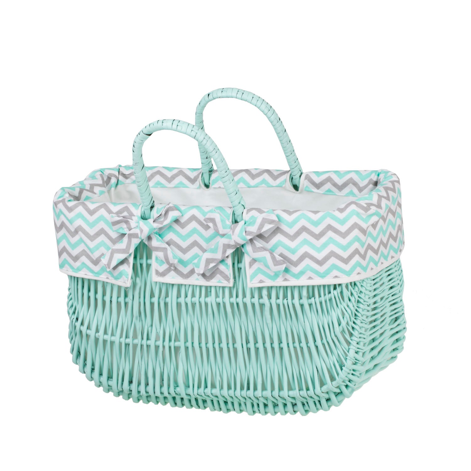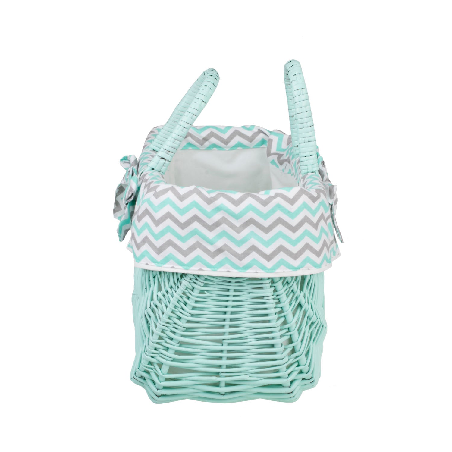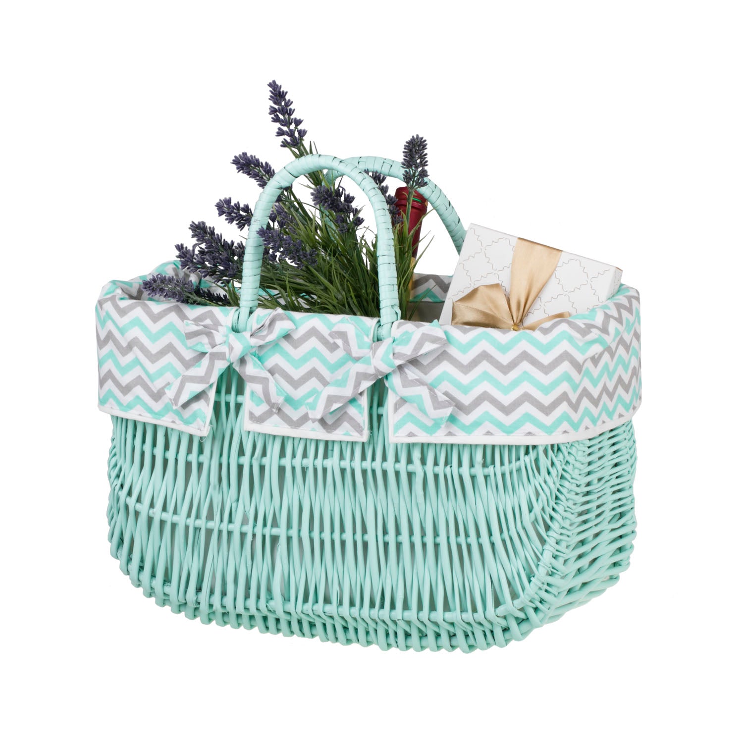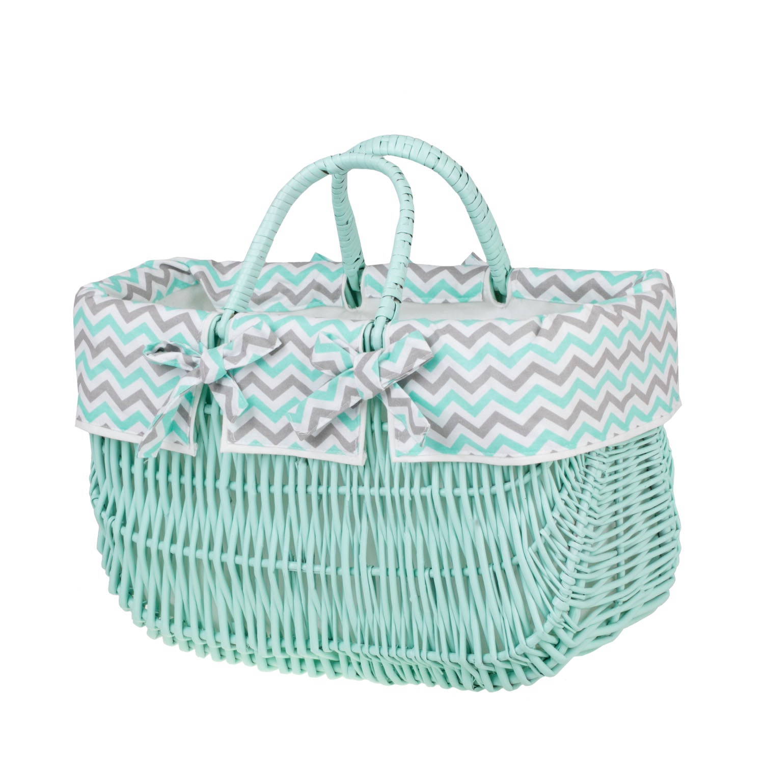 Werlissa wiklinowy koszyk zakupowy z miętowym obszyciem i rączkami TheWickerStories