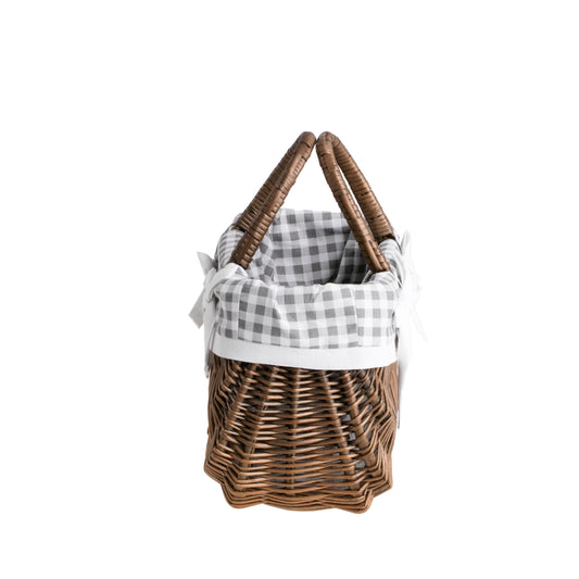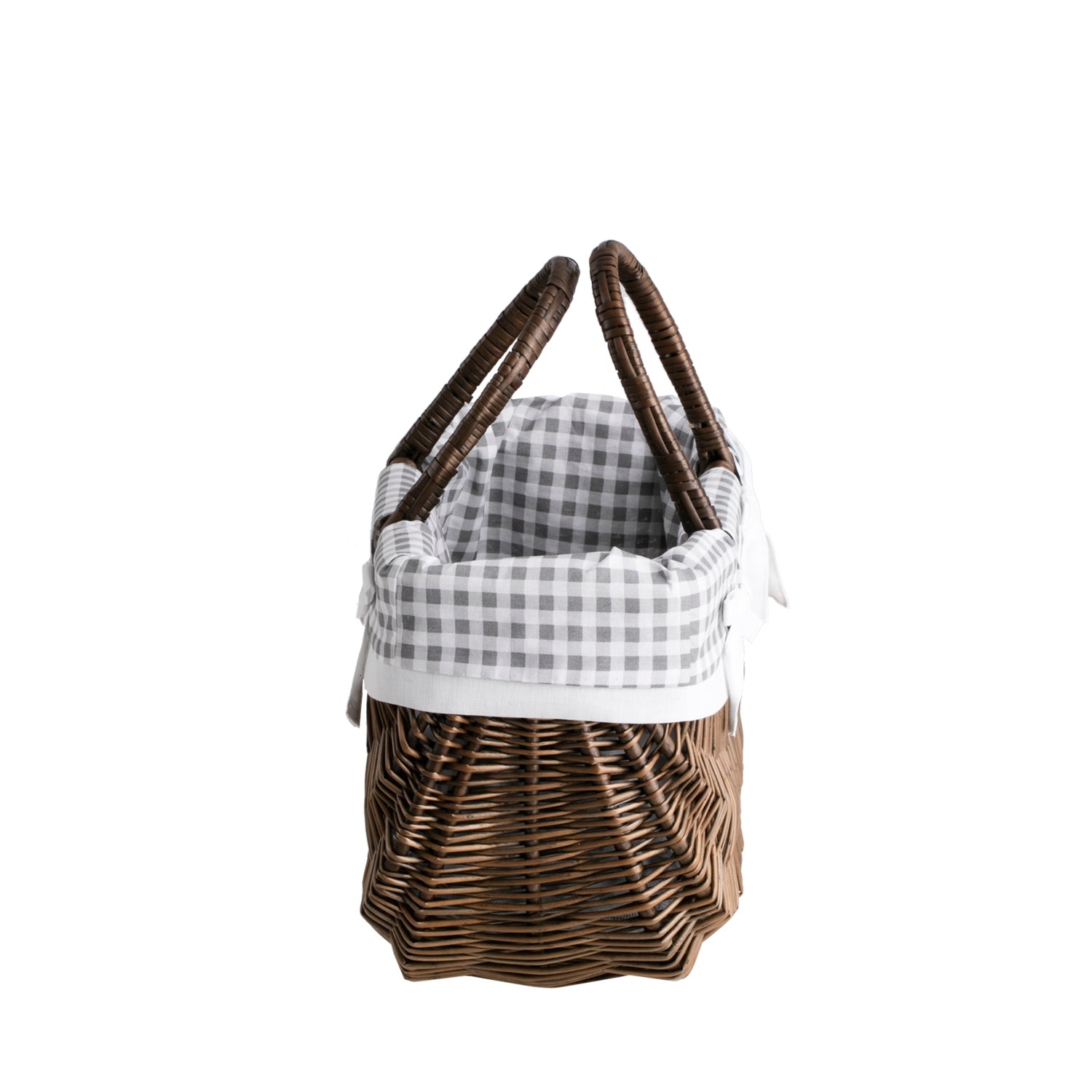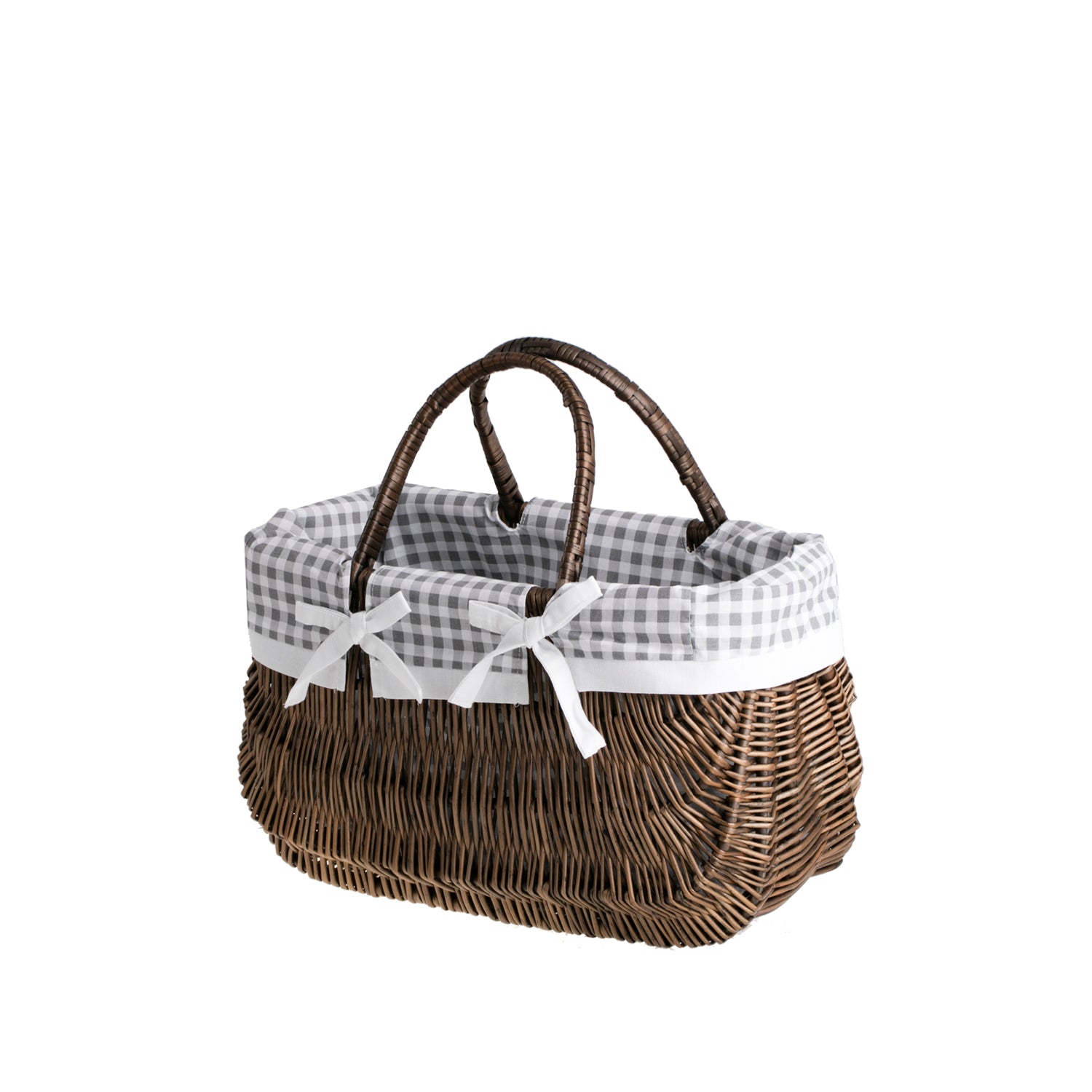 Werlissa wiklinowy koszyk zakupowy z szarym obszyciem i rączkami TheWickerStories