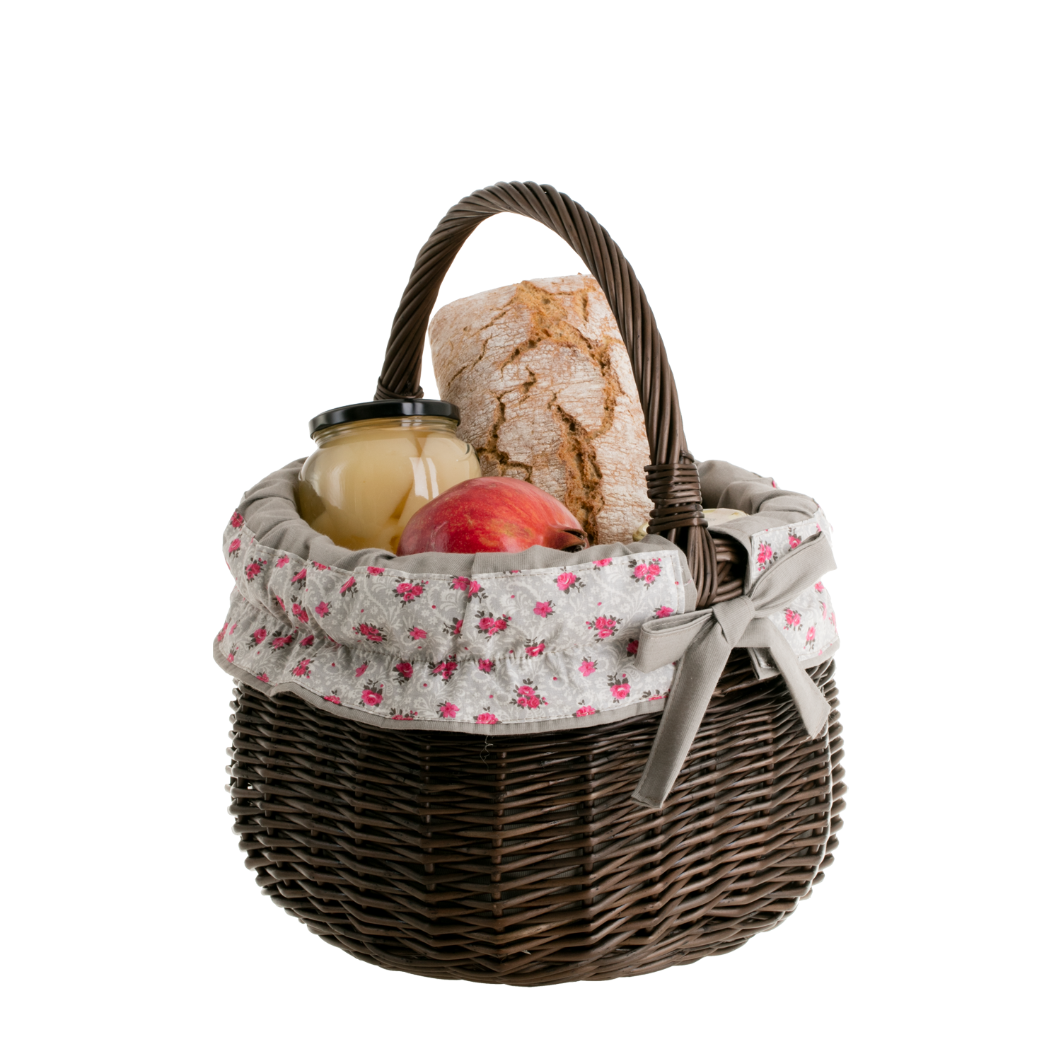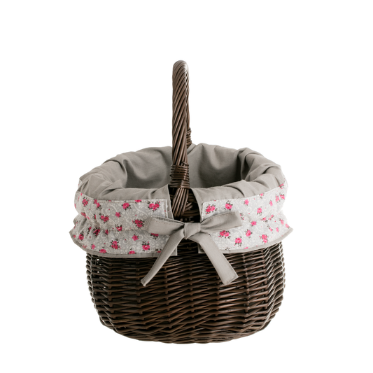 Wictor wiklinowy kosz na zakupy z szarym obszyciem, z rączką TheWickerStories