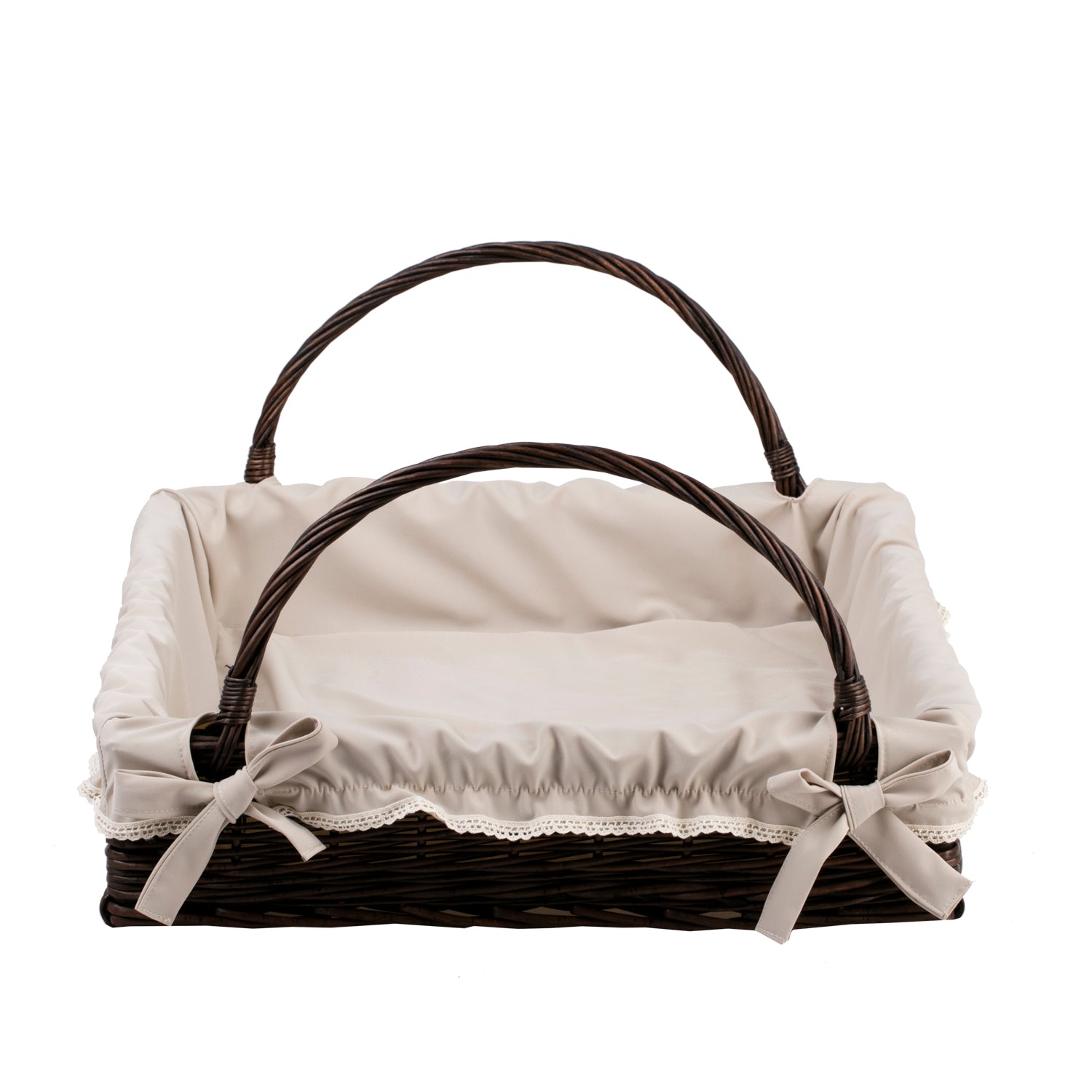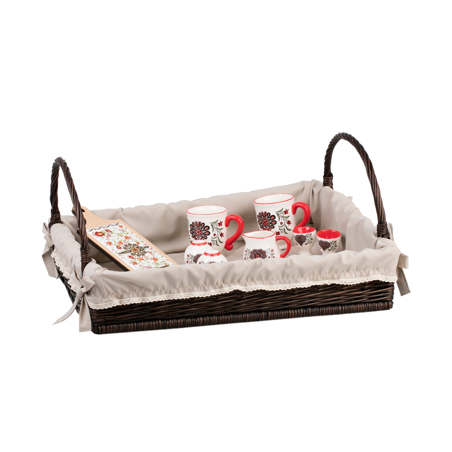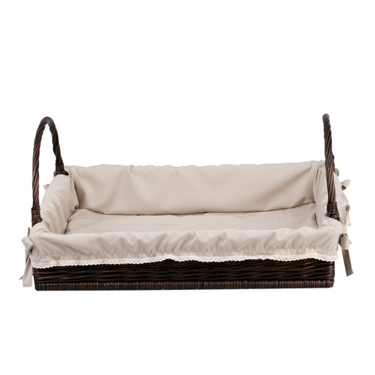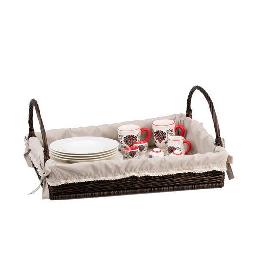 Wiklinowa prostokątna taca z uchwytami i obszyciem TheWickerStories