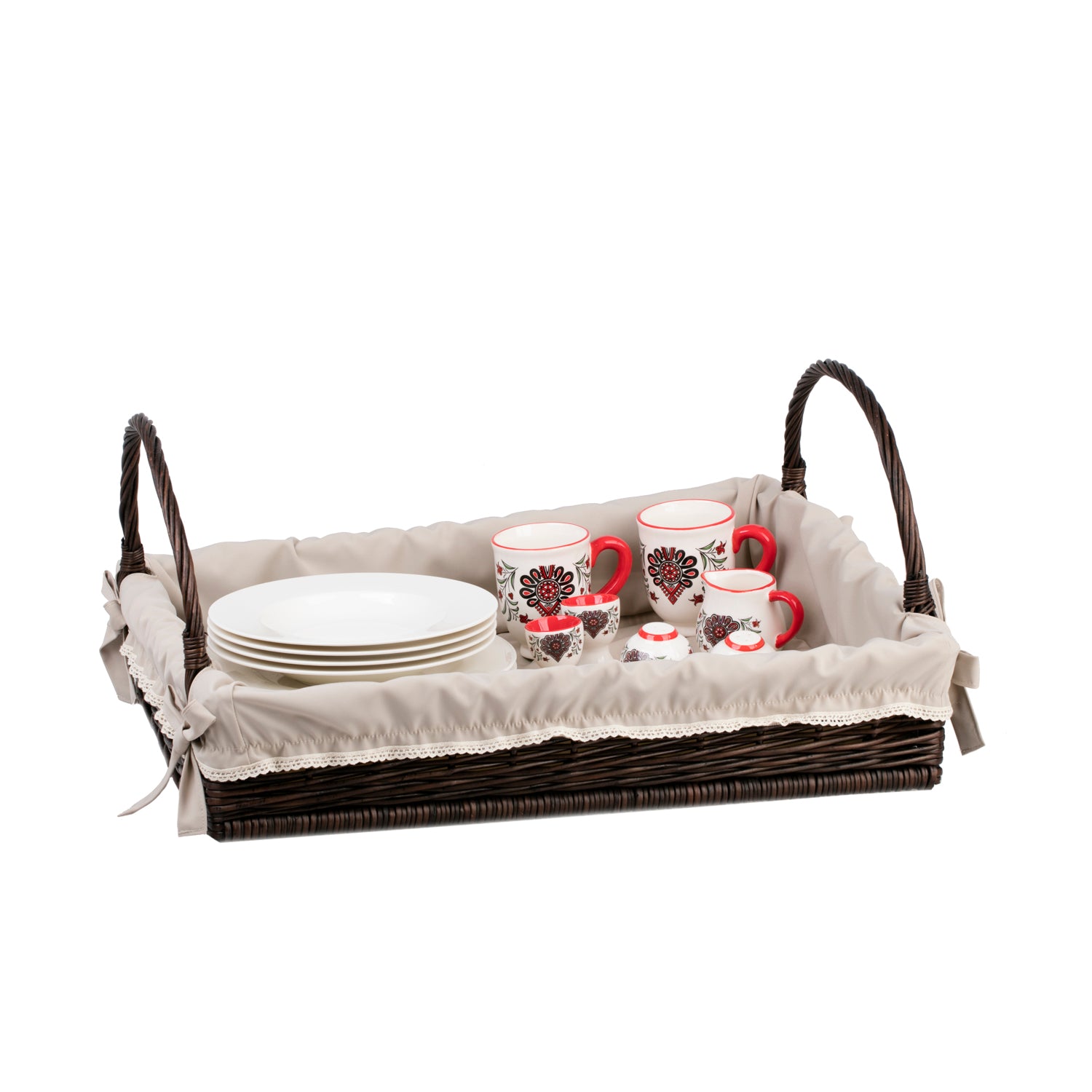 Specyfikacja Twojego Wiklinowa prostokątna taca z uchwytami i obszyciem TheWickerStories