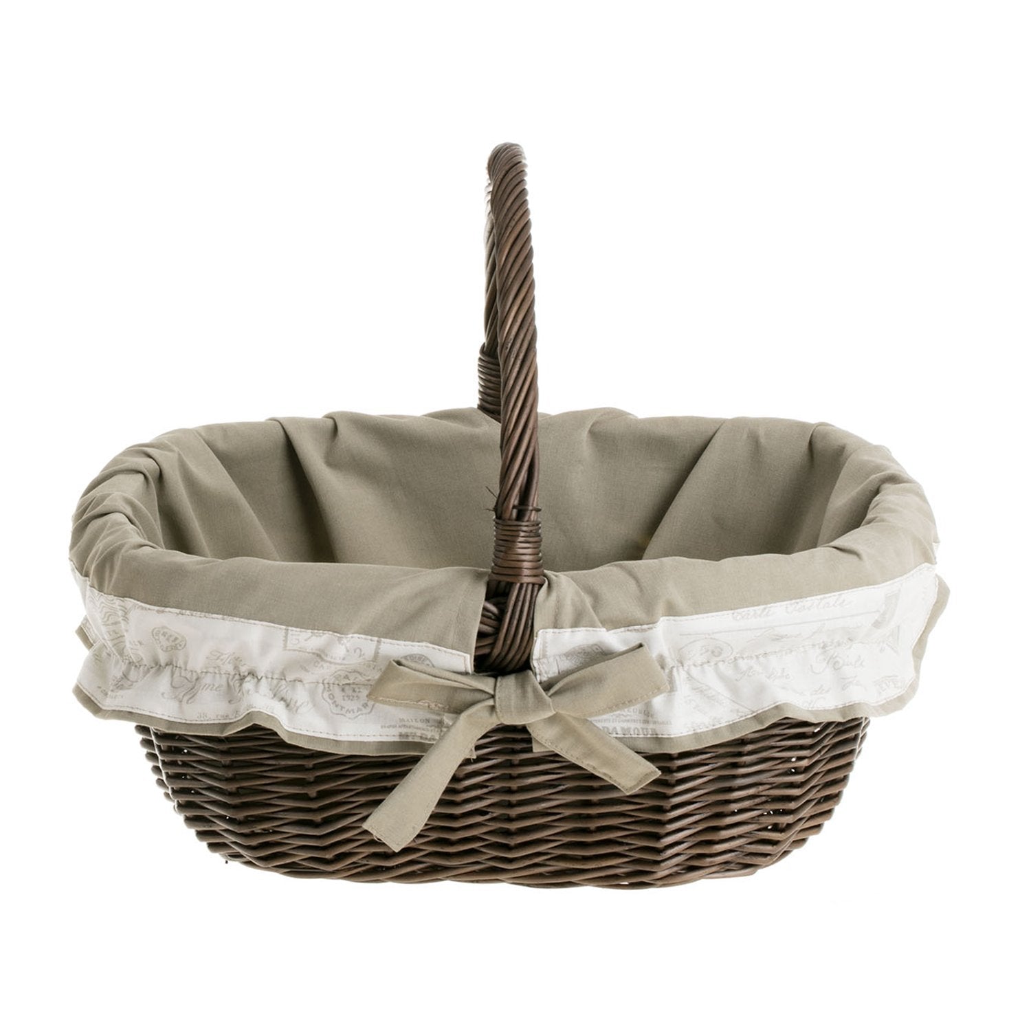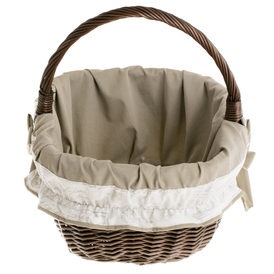 Wilhelmina kosz na zakupy z rączką wiklinową i beżowym obszyciem TheWickerStories