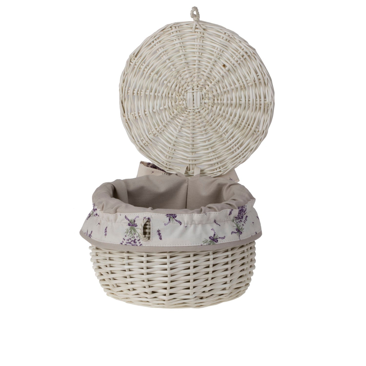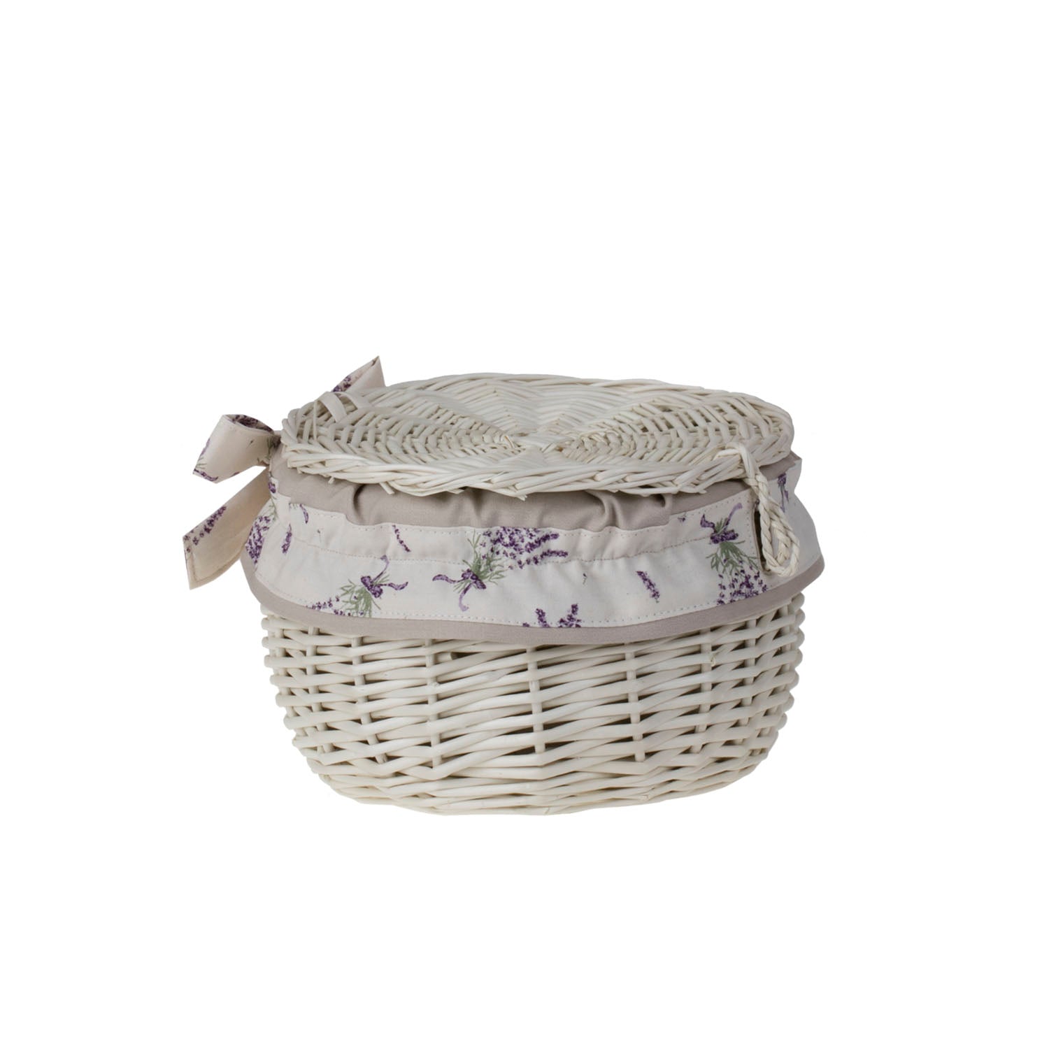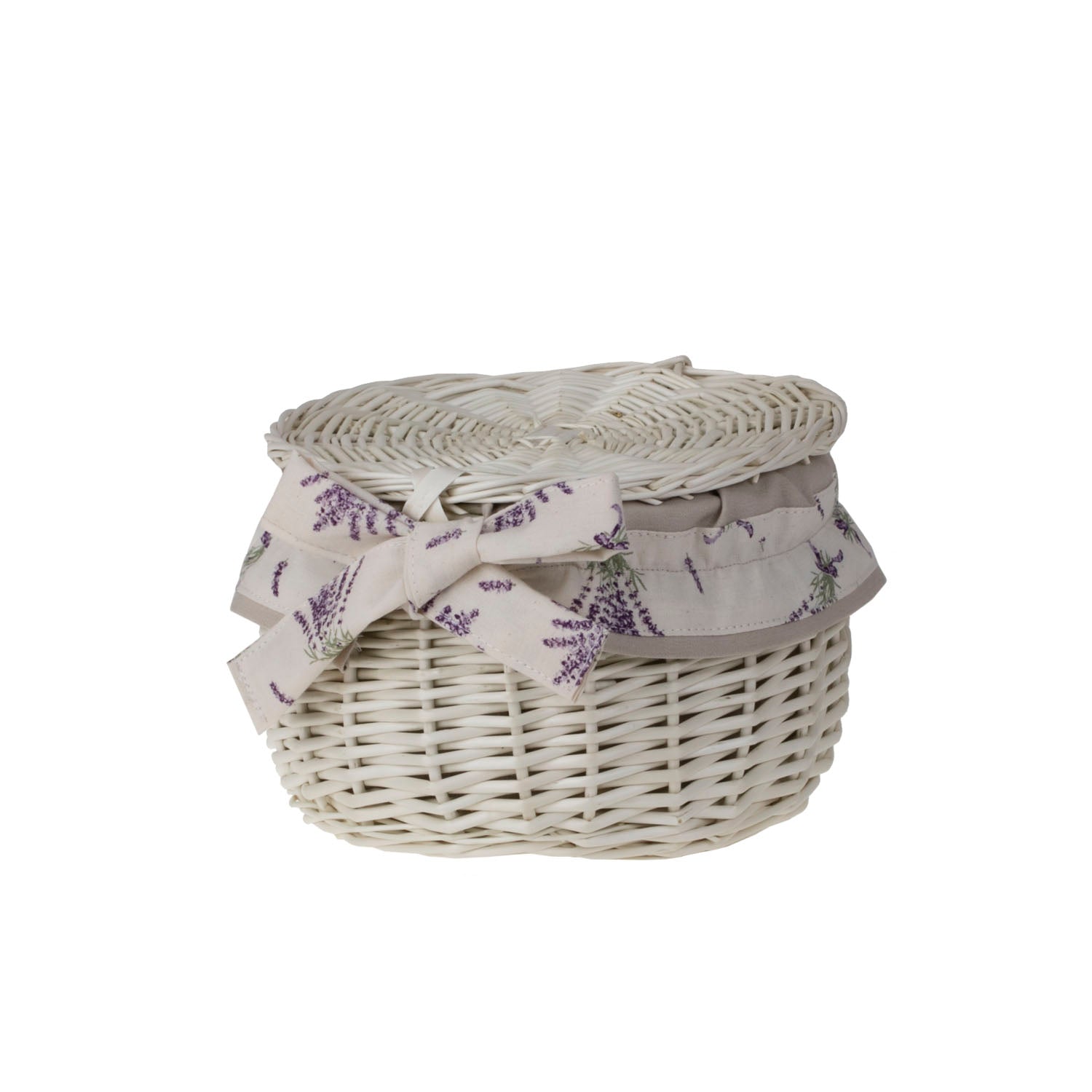 Wiloris wiklinowy kuferek na biżuterię z kremowym obszyciem, z pokrywą i kokardą TheWickerStories