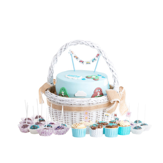 Specyfikacja Twojego Zalvina wiklinowy kosz prezentowy na uroczystości z jutowym obszyciem, z rączką TheWickerStories
