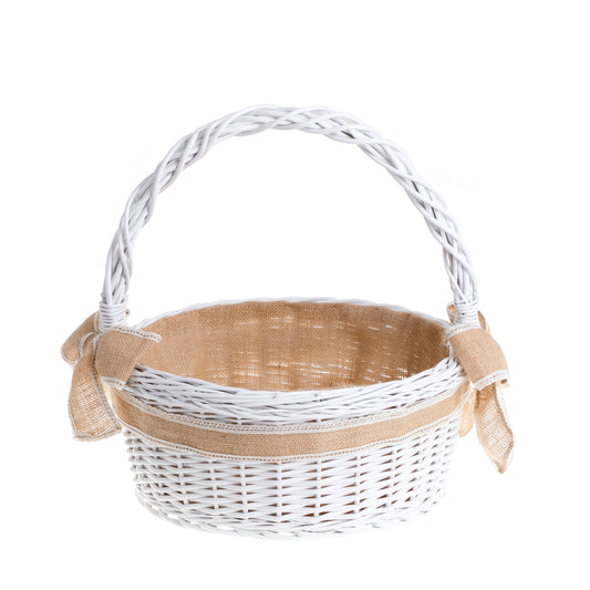 Wybierz ręcznie pleciony kosz z jutowym obszyciem – ekologiczny, trwały i piękny – i wnieś do uroczystości oraz domu naturalny, europejski styl.