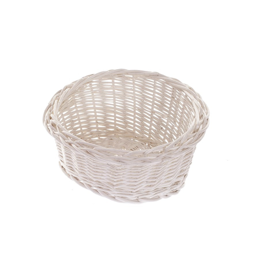 Elegancki kosz prezentowy z wikliny zachwyca kremowym wybarwieniem i lekką, harmonijną linią. Owalna misa z niskimi ściankami pięknie eksponuje zawartość, a górny rant spleciony w dekoracyjny warkocz dodaje całości szlachetnego charakteru. Gęsty, równy splot buduje stabilność, dno jest solidne i płaskie. Krawędzie są gładko wykończone, powierzchnia przyjemna w dotyku. Kosz jest otwarty, bez obszycia i bez uchwytów – minimalistyczny i funkcjonalny.