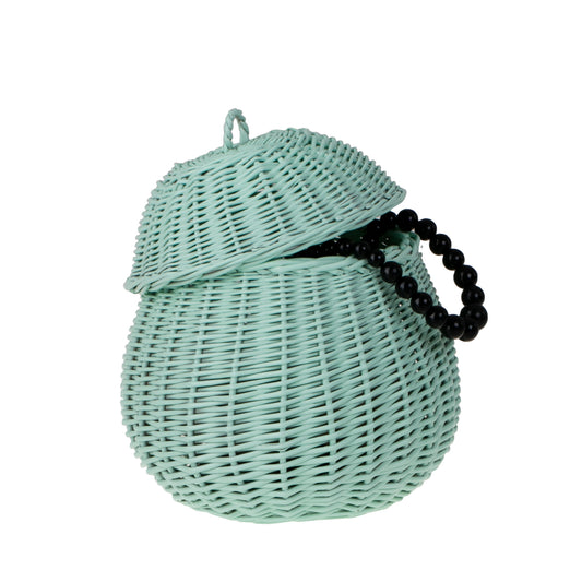 Ten uroczy kosz wiklinowy to połączenie naturalnego piękna, funkcjonalności i rękodzielniczej precyzji. Został wykonany ręcznie z ekologicznej wikliny i pomalowany na subtelny odcień mięty, dzięki czemu zachwyca lekkością i delikatnością. Praktyczna pokrywka z uchwytem ułatwia dostęp do zawartości, a obły kształt sprawia, że doskonale komponuje się z wystrojem każdego pomieszczenia – od pokoju dziecka po stylową łazienkę.