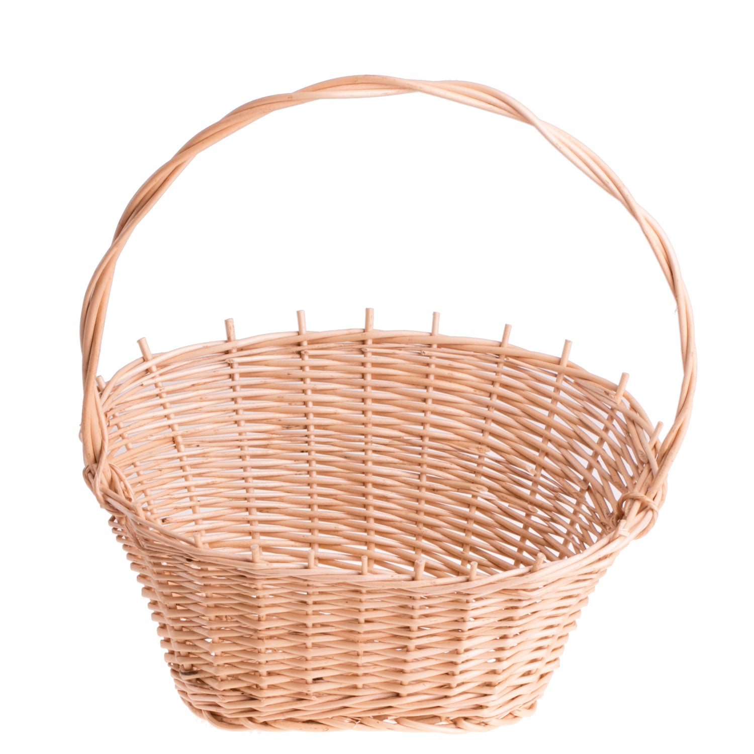 Wymiary kosza to 30 cm długości i 18 cm szerokości, przy trzystopniowej wysokości: 10 cm przy niskich bokach, 20 cm w części środkowej i aż 37 cm z rączką, co pozwala na komfortowe przenoszenie zawartości. Owalny kształt kosza zapewnia wygodne układanie produktów – od słodyczy, świeżych owoców, naturalnych kosmetyków po kwiaty, wypieki czy rękodzieło. Wykorzystasz go również jako stylową osłonkę na donice, koszyk piknikowy lub do wielkanocnych dekoracji.